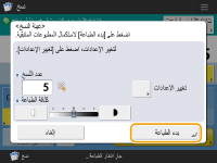 تظهر <نسخ عينة> فقط عندما تقوم بالتعيين لإعداد نُسخ متعددة وأحد الإعدادات التالية في الوقت نفسه. ترتيب (ترتيب صفحات) إزاحة تدوير بمقدار 90 درجة تدبيس + ترتيب كتيب |
