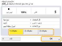 | | يمكنك استدعاء إعدادات نسخ سبق استخدامها. يمكن تغيير تفاصيل الإعداد المستدعى قبل النسخ. |