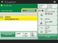 القائمة المنسدلة لقائمة العناوينيمكّنك من عرض مجموعة محددة من الوجهات. عند تسجيل الدخول إلى الجهاز باستخدام إدارة المصادقة الشخصية، يؤدي تحديد <قائمة عناوين شخصية> إلى عرض دليل العناوين الشخصي.