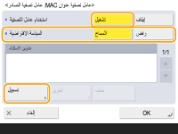 يمكنك تحديد ما إذا كنت تريد السماح بالاتصال بجهاز لديه عنوان MAC محدد أو رفض ذلك.