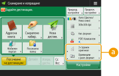 Броят на елементите за настройка, намиращи се в екрана с основни функции, и местоположението им на показване се различават в зависимост от функцията. Бутон за пряк път не се показва, ако <Не е присъединен> е зададено като пряк път. Ограниченията за броя на преките пътища за <Настройки>, които можете да регистрирате, са следните: Копиране: 5 Факс: 4 Сканиране и изпращане: 2 |
