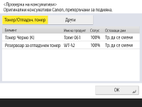 Проверка на подробното състояние на консумативите