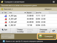 Следвайте процедурите по-долу, за да записвате сканирани документи в Усъвърш. простр. на друг мултифункционален принтер на Canon или на сървър на Windows.