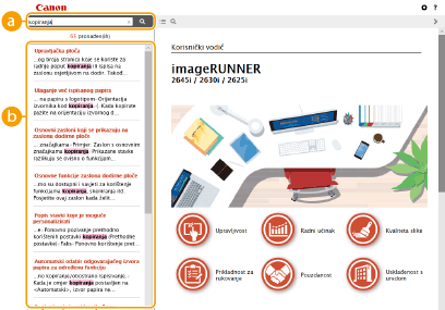 Kliknite da biste prikazali informacije o tome kako pregledati Korisnički vodič, kako pretraživati itd.