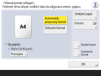 <OK>. Registriranje često korištene veličine i vrste papira za višenamjensku ladicu