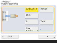 2 | Odaberite vrstu omotnica. ![]() Kako biste registrirali omotnicu prilagođene veličine pritisnite <Vlastiti> <Dalje> te pritisnite <X> ili <Y> kako biste odredili stranu. Potom putem numeričkih tipki unesite duljinu određene strane. |