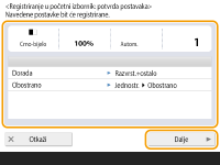 <Registriranje u početni izbornik> kada je postavka dovršena.