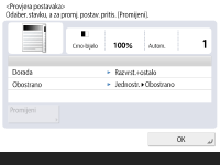 Rezerviranje kopijeSkeniranje je moguće obaviti unaprijed, čak i ako se uređaj priprema za ispis ili ispisuje. Ta funkcija naziva se „Rezervirano kopiranje“. Na primjer, da biste obavili rezervirano kopiranje dok ispisujete ili kada je prikazan zaslon čekanja, pritisnite <Zatvori>, odredite postavke kopiranja na uobičajeni način i pritisnite .Možete navesti do 50 dokumenta za rezervaciju, uključujući trenutni posao. Prekinuti poslovi kopiranja nisu uključeni u taj broj. |