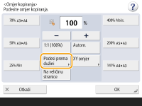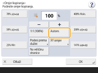 ![]() | Kopije standardnih formata možete uvećati ili umanjiti na neki drugi format papira. Povećavanje ili smanjivanje kopija sa standardnim formatima papira | |