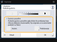 ![]() | Možete podesiti gustoću pozadine. To vam omogućava da napravite jasne kopije izvornika poput novina ili izvornika s obojanim pozadinama. Podešavanje gustoće pozadine kopija |