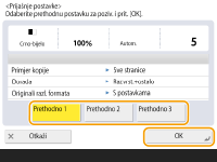 | | Možete ponovno pozvati prethodno korištene postavke kopiranja. Pojedinosti pozvanih postavki mogu se promijeniti prije kopiranja. |
