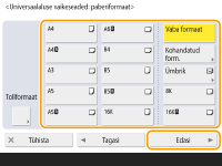 1 | Vajutage nuppu <Kohandatud formaat>. ![]() Saate määrata paberiformaadiks <Vaba formaat> ja sel juhul pole vaja paberiformaadi seadet sisestada. Määrake formaadiks <Vaba formaat> siis, kui sisestate kopeerimiseks tundmatu formaadiga paberi või kui paberiformaat on printeridraiveris juba salvestatud. |