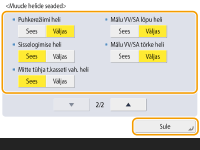 <Klahvi heli> | Kinnitusheli kõlab iga kord, kui vajutate juhtpaneelil klahvi või puuteekraani nuppu |