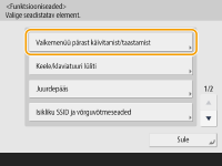 Isiklike seadete kasutamiseks peate olema sisse loginud isikliku autentimishalduse kaudu. Kasutajate haldamineVõimalikud seadedAllpool loetletud seadeid on võimalik määrata. Puuteekraanil kasutatav keel Juurdepääsu funktsioonid kasutajatele, kellel on puuteekraanil sisestustoimingute nägemine või tegemine raskendatud Isiklik pääsupunkt (isiklik SSID/võrguvõti) Tööde automaatne printimine sisselogimisel |