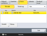 Kui dokumentide saatmine nurjus, valige uuesti saatmiseks <Detail.> <Saada uuesti>. Muu sihtkoha valimiseks valige <Muuda sihtkohta>. Mitme määratud sihtkohaga ja sama saatmismeetodiga dokumentide saatmiseks avage valik <Levitusloend>, valige sihtkoht ja vajutage <Saada uuesti> või <Muuda sihtkohta>.Saate dokumente uuesti saata, kui valik <Kustutus saatmise ebaõnnestumisel> on seatud olekusse <Väljas> (<Kustutus saatmise ebaõnnestumisel>). Pange tähele, et otsesaatmisega / käsitsi saatmisega / personaalarvuti faksiga saadetud dokumente ei saa uuesti saata. Saate muuta sihtkohta dokumentidel, millel on määratud saatmise aeg või mille saatmine nurjus. Pange tähele, et sihtkohti ei saa muuta, kui mitme määratud sihtkohaga dokumendid on saatmisel või kui uue sihtkoha sisestamine on keelatud (Saadaolevate sihtkohtade piiramine). Muuta saab saatmisvea tõttu tühistatud tööde sihtkohti ning selliste tööde sihtkohti, mis on määratud viitega saatmise jaoks. Mitut sihtkohta ei saa korraga muuta. Mitut sihtkohta ei saa korraga muuta ka ühes grupis. |