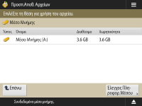 Οθόνη Επιλογής Θέσης Αποθήκευσης