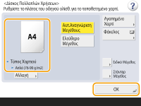 ![]() | Βεβαιωθείτε ότι η ρύθμιση μεγέθους χαρτιού του συρταριού ταιριάζει με το μέγεθος του χαρτιού που έχει τοποθετηθεί στο συρτάρι. |