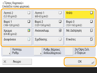 <OK>. Καθορισμός συχνά χρησιμοποιούμενου μεγέθους και τύπου χαρτιού για τον δίσκο πολλαπλών χρήσεων
