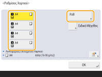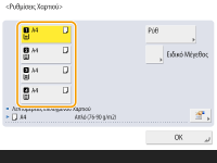 Επιλέξτε την πηγή τροφοδοσίας χαρτιού στην οποία έχει τοποθετηθεί το χαρτί και πατήστε <Ρύθμιση>.