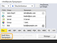 Πολλαπλοί προορισμοί που έχουν καταχωρηθεί στο βιβλίο διευθύνσεων μπορούν να συνδυαστούν σε μια ομάδα. Για λεπτομέρειες ανατρέξτε στην ενότητα Αποθήκευση Πολλών Προορισμών ως Ομάδα. Για να αλλάξετε ή να διαγράψετε πληροφορίες σχετικά με τους προορισμούς που έχουν καταχωρηθεί στο Βιβλίο διευθύνσεων, δείτε την ενότητα Επεξεργασία καταχωρισμένων προορισμών στο Βιβλίο διευθύνσεων. Μπορείτε να χρησιμοποιήσετε ένα όνομα UPN μόνο εάν στέλνετε σε έναν υπολογιστή ενός domain του οποίου η διαχείριση γίνεται μέσω Active Directory. |