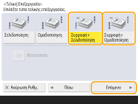 Πατήστε <Συρραφή+ Σελιδοποίηση> ή <Συρραφή+ Ομαδοποίηση>