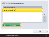 2 | Επιλέξτε το μέσο μνήμης που θέλετε να αποσυνδέσετε και πατήστε <Αφαίρεση>. ![]() |