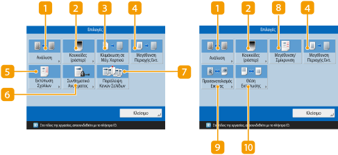 Μπορείτε να ρυθμίσετε/αλλάξετε μόνο τις ακόλουθες λειτουργίες όταν έχουν επιλεγεί ταυτόχρονα διαφορετικοί τύποι αρχείων (όπως PDF και JPEG). Επιλογή Χαρτιού Εκτύπωση 2-Όψεων Αλλαγή Αρ. Αντιγράφων |