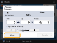 Ha megnyomja a vezérlőpanel billentyűjét, miközben az Alapvető másolási funkciók képernyő látható, a másolási feladat szünetel, továbbá megjelenik a <<Stop>Válassza ki a visszavonni kívánt munkát.> üzenet és a másolási feladatok listája. A másolási feladatot a listából kiválasztva megszakíthatja azt a <Mégse> gombbal.Ha bejelentkezik a személyes hitelesítés-kezeléssel, és megnyomja a vezérlőpanel billentyűjét, amikor is megjelenik a <<Stop>Válassza ki a visszavonni kívánt munkát.> üzenet és a másolási feladatok listája, majd ezután kijelentkezik, akkor az utolsó feladat, amelyet a kijelentkezett felhasználó végrehajtott, megszakad, és a többi feladat folytatódik. |