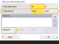 Állítsa a <Szűrő alkalmazása> lehetőséget <Be> értékűre, válassza ki az <Alap házirend> lehetőséget, majd nyomja meg a <Bejegyzés> gombot.