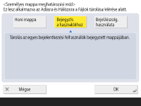 A Személyes mappa egy olyan mappa, amely az alábbi képernyők között van megosztva. <Beolvasás és adás> <Hálózat> a <Beolvasás és tárolás> részben <Hálózat> a <Tárolt fájl elérése> részben |