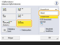1 | Válassza az <OOXML> lehetőséget a legördülő listából válassza a <Word> elemet.![]() ![]() Az OCR-funkció nyelvének módosításához nyomja meg a <Részletek beállítása> <Változtat> gombot válasszon egy nyelvet vagy nyelvcsoportot nyomja meg az <OK> gombot.Válasszon egy nyelvet vagy nyelvcsoportot a beolvasott dokumentumokban használt nyelvnek megfelelően. |