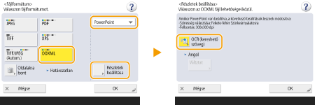 1 | Válassza az <OOXML> lehetőséget a legördülő listából válassza a <PowerPoint> elemet. nyomja meg a <Részletek beállítása> <OCR (kereshető szöveg)> gombot.![]() |