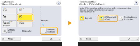 1 | Válassza az <XPS> beállítást nyomja meg a <Részletek beállítása> <OCR (kereshető szöveg)> gombot.![]() |