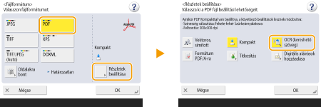 1 | Válassza az <PDF> beállítást nyomja meg a <Részletek beállítása> <OCR (kereshető szöveg)> gombot.![]() |