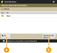Kijelzőváltó gombNyomja meg a <Fel> gombot az aktuális szintről eggyel feljebb lépéshez. A megjelenített képernyő tartalmának frissítéséhez nyomja meg a