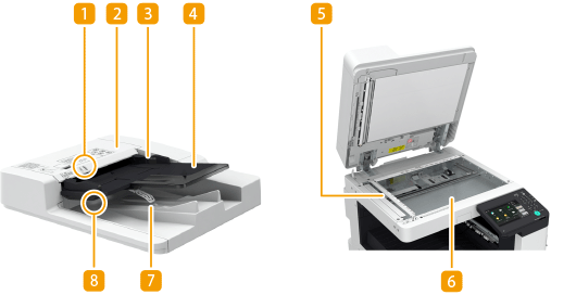 Ja uz kopēšanas stikla ir novietots biezs oriģināls, piemēram, grāmata vai žurnāls, nespiediet padevēju stipri uz leju. Nelieciet oriģinālu izvades zonā nekādus priekšmetus. Pretējā gadījumā dokumenti var tikt sabojāti. Regulāri notīriet padevēju un kopēšanas stiklu, lai iegūtu kvalitatīvas izdrukas. Regulāra tīrīšana |