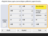 Ja opcija <Vienmēr norādīt> iestatījumos <Universālā paliktņa noklusējumi> ir iestatīta uz <Izlases papīrs>, tiek parādīts ekrāns, kurā jūs varat izvēlēties izlases papīru, kad ievietojat papīru daudzfunkciju papīrturī. <Universālā paliktņa noklusējumi> |