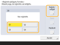 Izvēlieties kādu no <S1>–<S4> pogām un nospiediet <Reģistrēt/rediģēt>.