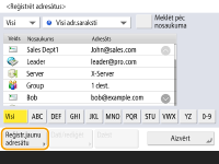 Vairākus adrešu grāmatā reģistrētus adresētus var apvienot grupā. Papildinformāciju skatiet sadaļā Vairāku adresātu reģistrēšana grupā. Lai mainītu vai dzēstu informāciju par adrešu grāmatā reģistrētajiem adresātiem, skatiet sadaļu Adrešu grāmatā reģistrēto adresātu rediģēšana. UPN (User Principal Name) var lietot, tikai nosūtot uz datoru, kas pieder domēnam, kas tiek darbināts ar aktīvo direktoriju (Active Directory). |
