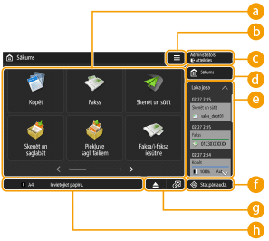 Atkarībā no iekārtas režīma un lietojuma statusa, no kreisās puses uz labo ir izkārtotas trīs veidu pogas. Ņemiet vērā, ka parādītās pogas atšķiras atkarībā no modeļa un instalētajām opcijām.