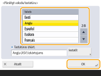 . Pašreizējo displeja valodu varat pārslēgt uz citu, nospiežot pogu <Pārslēgt valodu/tastatūru>, sarakstā izvēloties vēlamo valodu un pēc tam nospiežot <OK>.