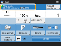 Dažas funkcijas nevar izmantot, savstarpēji tās kombinējot. Pogas, kuras nevar izvēlēties, tiek parādītas gaiši pelēkā krāsā. Ja nodaļas ID pārvaldības sadaļā ir iestatīts lappušu ierobežojums, tiek parādīts atlikušais lappušu skaits. Informāciju par nodaļas ID pārvaldības un lappušu ierobežojumu iestatīšanu skatiet sadaļā Nodaļu ID pārvaldības iestatījumu konfigurēšana. |