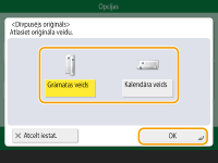 ![]() | Norādot oriģināla veidu, piemēram, dokuments tikai ar tekstu vai žurnāls ar attēliem, to var sūtīt ar optimālu attēla kvalitāti. Oriģināla veida izvēlēšanās |