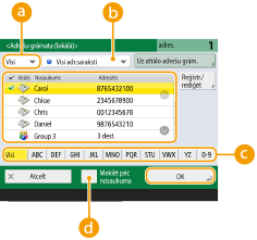 , tiek parādīti attiecīgi faksa un grupas adresāti.