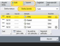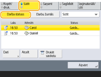 Izmantojot personīgās autentifikācijas pārvaldību, var liegt lietotājiem veikt darbības ar citu lietotāju uzdevumiem ekrānā <Stat.pārraudz.>. <Ierobežot piekļuvi citu lietotāju darbiem> |