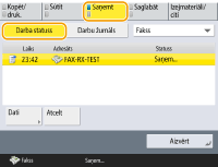 Nospiežot <Dati> <Sūtīt atkārtoti>, var vēlreiz nosūtīt dokumentus, kuru sūtīšana nav izdevusies. Lai norādītu citu adresātu, nospiediet <Mainīt adresātu>. Dokumentiem, kam ir norādīti vairāki adresāti, izmantojiet tādu pašu sūtīšanas metodi, nospiežot <Apraides saraksts>, atlasot adresātu, tad nospiežot <Sūtīt atkārtoti> vai <Mainīt adresātu>.Dokumentus var sūtīt vēlreiz, ja iespēja <Dzēst neizdevušos SŪT darbus> ir iestatīta kā <Izsl.> (<Dzēst neizdevušos SŪT darbus>). Ņemiet vērā, ka dokumentus, kas nosūtīti ar tiešo sūtīšanu/manuālo sūtīšanu/sūtot no datora, nav iespējams sūtīt vēlreiz. Var mainīt adresātus dokumentiem, kuru sūtīšana iestatīta uz noteiktu laiku, kā arī dokumentiem, ko nav izdevies nosūtīt. Ņemiet vērā, ka adresātu nevar mainīt dokumentiem sūtīšanas procesā, kam ir vairāki adresāti, vai, ja ir ierobežota iespēja ievadīt jaunu adresātu (Pieejamo adresātu ierobežošana). Adresātu var mainīt uzdevumam, kas ir atcelts pārraides kļūdas dēļ, vai uzdevumam, kas gaida uz nosūtīšanu atliktās nosūtīšanas (Delayed Send) režīmā. Nevar vienlaikus mainīt vairākus adresātus. Nevar arī vienlaikus mainīt adresātus grupā. |