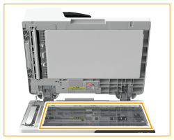 Noslaukiet padevēja un kopēšanas stikla aizmuguri.