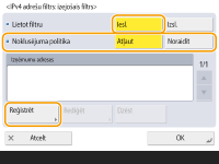 Iestatiet opciju <Lietot filtru> pozīcijā <Iesl.>, atzīmējiet <Noklusējuma politika>, tad nospiediet <Reģistrēt>.