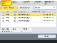 Nospiežot <Dati> pēc tam, kad ir atlasīts dokuments, varēsit atcelt drukāšanu, lai pārbaudītu uzdevuma statusu u. tml.