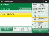 Režīmu Šifrēts PDF var iestatīt, kad opcijai <Faila nosaukums> ir iestatīts iestatījums <Autom. (OCR)>.
